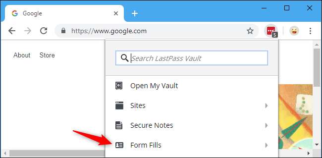 LastPass에서 양식 채우기 프로필을 만들려면 LastPass 아이콘> 양식 채우기를 클릭합니다.
