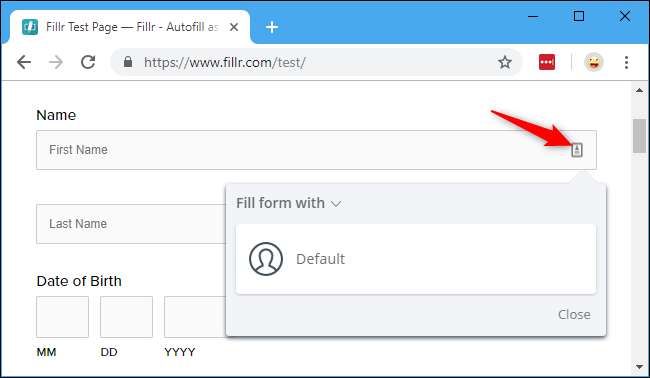 LastPass 아이콘> 양식 채우기를 클릭하고 양식 채우기 이름을 클릭 할 수도 있습니다. 저장된 프로필의 정보는 현재 페이지의 양식에 자동으로 채워집니다.