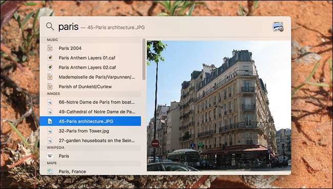 파일을 빨리 찾아야 할 때 정말 유용합니다. 파리에서 찍은 사진을 빠르게 찾으려면 Command + Space를 누르고 "Paris"라는 단어를 검색하면됩니다.