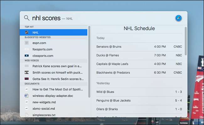 이 트릭은 스포츠 점수에도 적용됩니다. "NHL 점수"를 입력하면 오늘 일정과 몇 가지 최근 점수를 볼 수 있습니다.