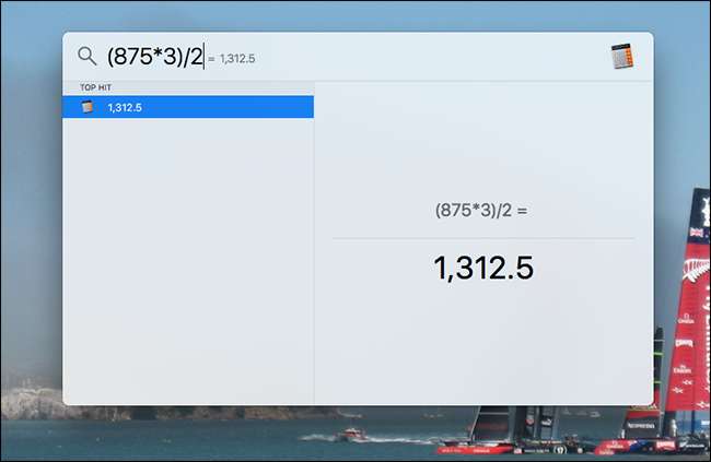 Spotlight를 빠른 계산기로 사용할 수도 있습니다.