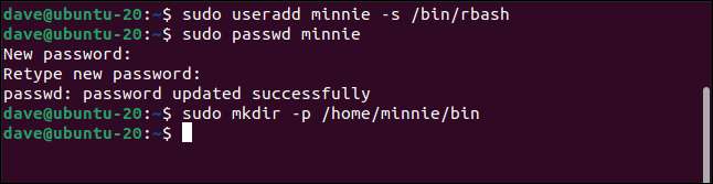 sudo useradd minnie -s / bin / rbash