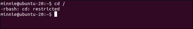 Minnie가 로그인하면 그녀는 제한된 쉘에서 실행됩니다.