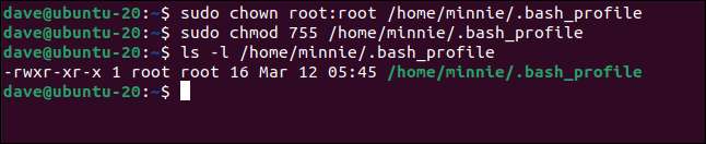 sudo chown root : root /home/minnie/.bash_profile