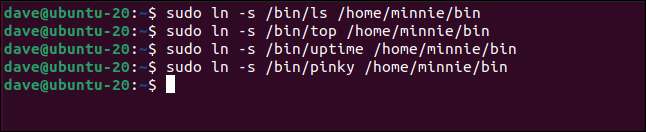 sudo ln -s / bin / ls / home / minnie / bin