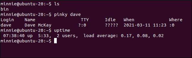 Minnie가 다음 로그인하면 Bash Bath-in 명령과 연결된 명령을 사용할 수 있음을 알 수 있습니다.