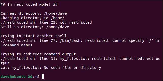 스크립트의 두 번째 부분 - 제한된 쉘에서 "set -r"라인이 실행 된 후 비트입니다.