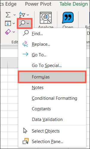 [삼] 시트에 수식을 포함하는 모든 세포를 추가하는 것을 선호하는 경우 이것은 단순한 것과 같습니다. 시트가 활성화되어 있으면 홈 탭으로 이동하십시오. [삼] "찾기 & amp; 리본 편집 섹션에서 "드롭 다운 상자를 선택하고"수식 "을 선택하십시오. [삼]