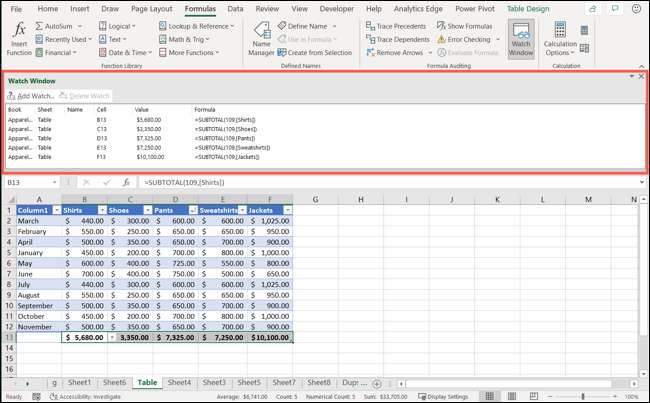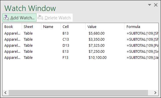 이것은 시계 창이 큰 스프레드 시트에서 너무 귀중한 경우입니다. 수식 (값)의 결과를 확인 해야하는 경우 현재 시트를 스크롤하고 다른 하나로 이동하거나 다른 통합 문서를보기로 당길 필요가 없습니다. 그냥 시계 창을 봐.