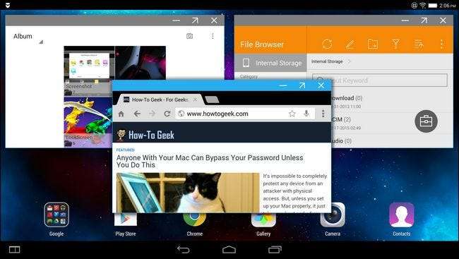 겹겹이 쌓인 타일이없는 창은 데스크톱 운영 체제를 표시하는 대형 데스크톱 모니터에 적합 할 수 있지만 제한된 화면 공간 (및 모바일 운영 체제의 바로 디자인)과 관련하여 화면이 멀티 태스킹 기능을 갖는 것은 의미가 없습니다. 부동산은 완전히 활용되지 않습니다. 홈 화면 배경과 응용 프로그램 바로 가기를 표시하는 창 주변의 추가 공간은 완전히 낭비이지만, 창을 가장자리에 스냅하여 명확하게 정렬하는 기능은 없습니다 (창 크기를 전체 화면 또는 세트 사이의 크기로 조정하는 것은 말할 것도 없습니다). 창 크기). 기본 크기는 디스플레이 크기의 깨끗한 부분도 아니므로 깔끔한 인터페이스를 위해 수동으로 타일링 할 수도 없습니다.
