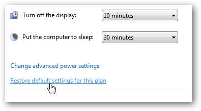 기본 설정으로 되돌리려면 이 계획의 기본 설정 복원 .