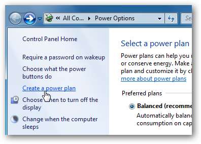 사용자 지정 계획을 생성하려면 전원 계획 만들기 전원 옵션 섹션에서.