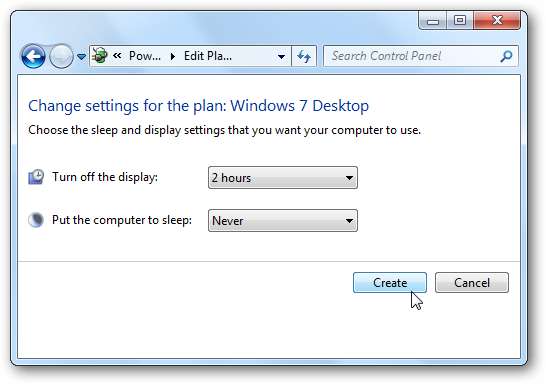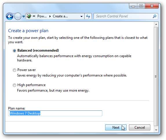 전원 계획 만들기 창에서 원하는 것과 가장 가까운 미리 결정된 계획을 만들고 계획에 이름을 지정합니다.