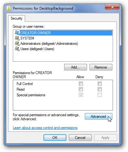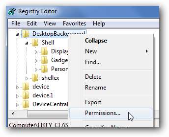 우리가해야 할 일은 DesktopBackground 키를 마우스 오른쪽 버튼으로 클릭하고 권한을 선택하여 키에 대한 권한을 부여하는 것입니다.