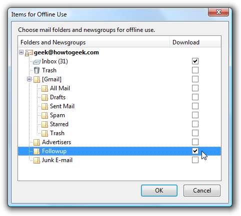"오프라인 사용을위한 폴더 선택"상자를 클릭 한 다음 대화 상자에서 선택하여 오프라인 사용을위한 다른 폴더 / 레이블을 선택할 수도 있습니다.