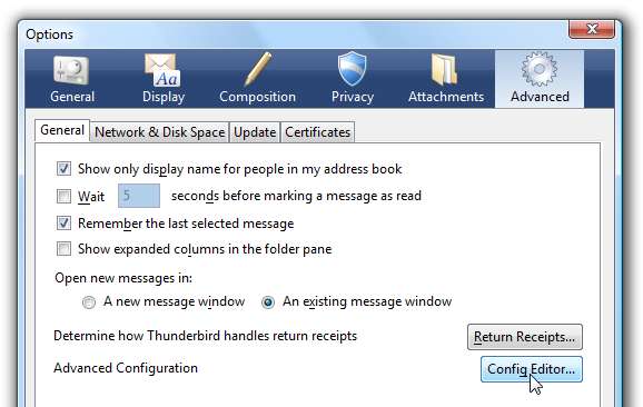고급 탭 / 버튼을 선택하고 구성 편집기를 클릭합니다.
