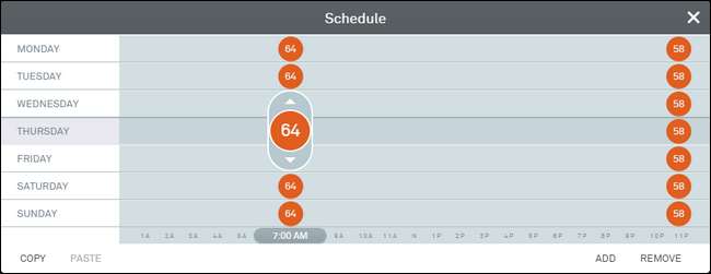 결국 Nest가 학습 한 일정을 수동으로 조정하거나 재정의 할 수도 있습니다. 문제 없어요. 이전 스타일의 프로그래밍 가능한 온도 조절기를 프로그래밍하는 엄청난 고통과 버튼 클릭 열풍과 달리 제어판에서 "일정"기능을 열고 마음의 내용에 맞게 조정할 수 있습니다.