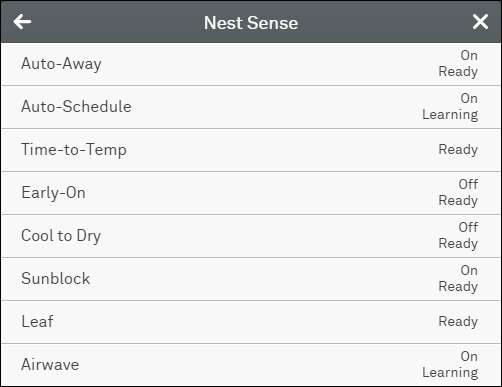 Nest의 학습 및 스마트 기능의 핵심은 Nest Sense 시스템입니다. Nest Sense 메뉴를 열면 Nest를 빛나게하는 다양한 Nest Sense 기능에 대한 항목을 찾을 수 있습니다. 지금 살펴 보겠습니다.