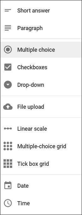 그런 다음 목록에서 원하는 질문 유형을 선택합니다.