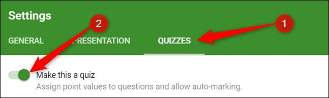 "퀴즈"탭을 클릭 한 다음 "퀴즈로 만들기"를 켜십시오.