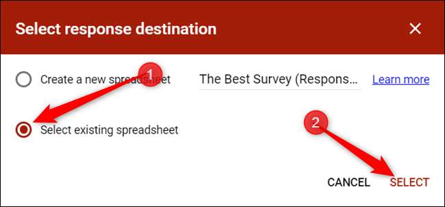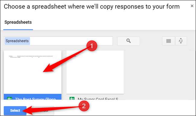 사용하려는 스프레드 시트가 이미있는 경우에도 그렇게 할 수 있습니다! '만들기'를 클릭하는 대신 '기존 스프레드 시트 선택'을 클릭 한 다음 '선택'을 클릭합니다.