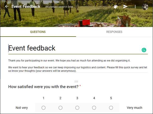 양식의 테마와 관련하여 사용자 정의가 부족하지만 (헤더에 대한 이미지를 업로드 할 수 있다는 점을 제외하고) Google Forms가 제공해야하는 다른 모든 것으로이를 보완합니다.