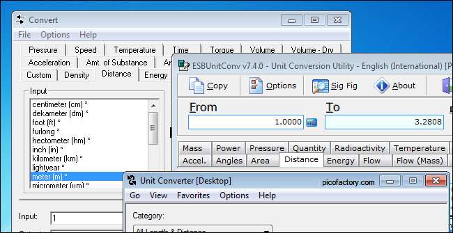 ESBUnitConv는 휴대용 버전 . 더 많은 변환, 지수 표기법, Paper Trail, 더 많은 사용자 정의, 향상된 계산기, 온라인 도움말 등을 $ 19에 제공하는 상용 버전을 사용할 수 있습니다.