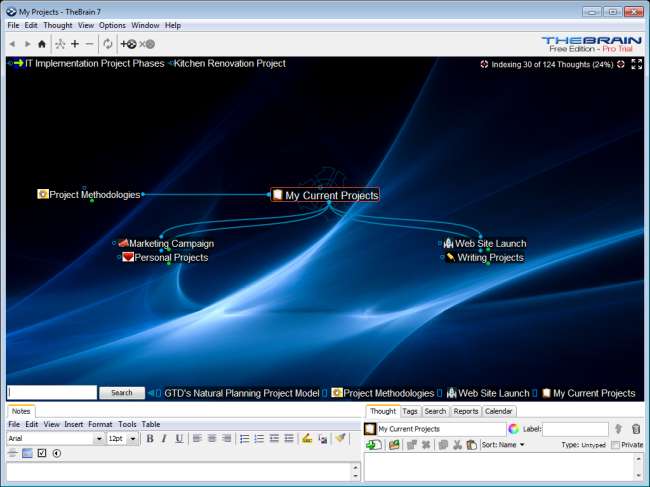 TheBrain을 다운로드하면 Pro 버전의 특징 ($ 219) 30 일. 그 이후에도 Pro 버전에서 제공되는 고급 기능을 계속 사용하려면 업그레이드 비용을 지불해야합니다. 그러나 업그레이드하지 않는 경우에도 계속해서 TheBrain Free Edition을 사용하여 작업 내용을 잃지 않고 새로운 생각과 메모를 추가 할 수 있습니다.