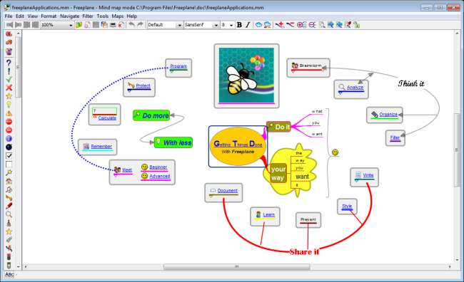 프리 플레인 무료 오픈 소스 마인드 매핑 프로그램으로 생각과 정보를 정리하고 공유 할 수 있습니다. 이 프로그램을 사용하여 프리 스타일의 연결되지 않은 메모 (예 : 포스트잇)를 작성하거나 선을 사용하여 아이디어를 계층 구조로 정렬 할 수 있습니다. 노드는 링크, 커넥터 및 레이블로 연결되고 시각적 컨테이너를 사용하여 그룹화되고 메타 데이터 또는 속성으로 분류 될 수 있습니다.