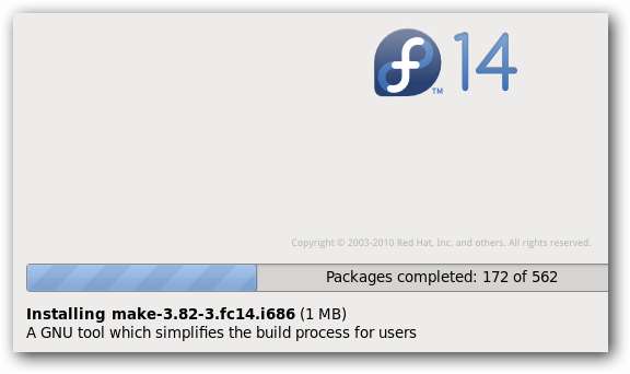 올바른 하드 드라이브가 연결되면 설치 CD에서 시스템을 부팅합니다. 처음 몇 단계에서는 언어, 키보드 레이아웃, 시간대 및 루트 암호를 선택하도록 요청하므로 해당 항목을 건너 뛰고 사용자가 거기에서 수행 할 작업을 알고 있다고 가정합니다.