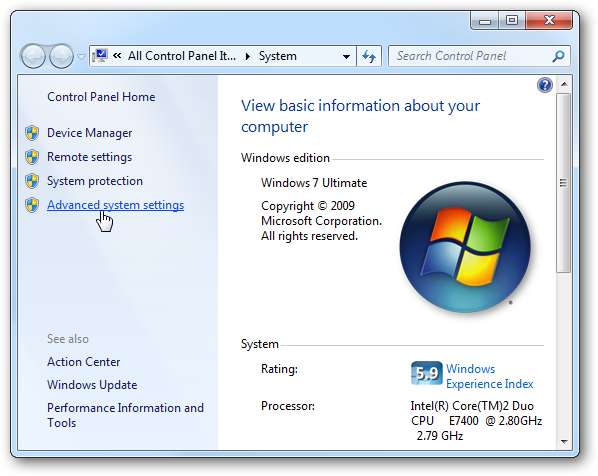 이제 고급 시스템 설정 링크.
