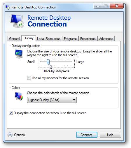 컴퓨터로 원격 이동하는 경우 세션을 시작하기 전에 선택할 수있는 다양한 옵션이있어 원격 데스크톱 환경을 변경할 수 있습니다. 이러한 설정을 실험하여 자신에게 가장 적합한 설정을 찾아야합니다. 특히 오래된 하드웨어에서 프로세스를 더 빠르게 만들고 싶다면 원격 연결의 디스플레이 크기와 색상을 줄이십시오. 예쁘지 않을 수도 있지만 더 빨리 작업을 완료 할 수 있습니다.