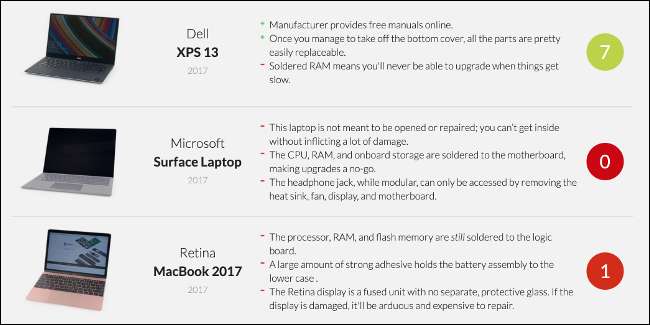 컴퓨터에 보증이 적용되지 않거나 상관하지 않는 경우 직접 문제를 해결하는 것이 좋습니다. 안타깝게도 모든 노트북을 쉽게 열 수있는 것은 아닙니다. 특히 Apple 및 Microsoft 노트북은 매우 낮습니다. iFixit 수리 가능성 점수 , 그 구조에 많은 접착제와 땜납이 사용되었음을 나타냅니다.