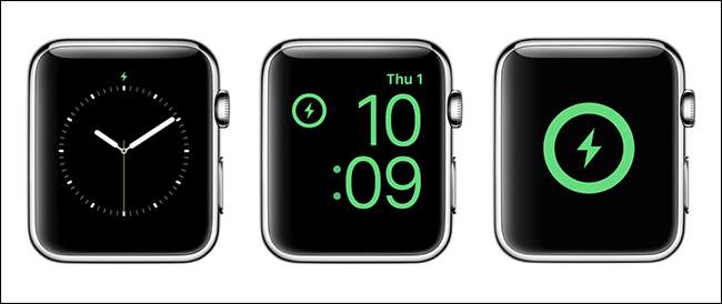 Apple Watch가 충전되면 화면에 녹색 번개 볼트 표시기가 있습니다. 번개가 빨간색 인 경우 배터리가 부족하고 충전해야합니다.