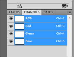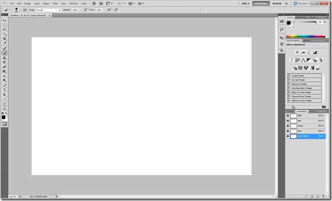 De oplossing : Dit kan een van de vele problemen zijn. Ga naar Selecteren> Deselecteren als je een gebied hebt geselecteerd met het selectiekader dat je misschien bent vergeten of niet kunt zien. Ga van daaruit naar je kanalenpaneel en controleer of je niet in een snelmaskerkanaal of een ander extern kanaal werkt. Als dat zo is, klik dan op het gecombineerde RGB-kanaal (zie afbeelding hierboven, midden) of het gecombineerde CMYK-kanaal, als je toevallig in CMYK werkt. Je zou ook moeten kunnen zien of je je in een maskerkanaal bevindt, een andere mogelijke valkuil.