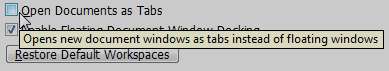 Het probleem : U bent gemigreerd naar een nieuwe versie van Photoshop, behalve dat u de tabbladenfunctie moet gebruiken wanneer u een document opent of een nieuw document maakt.