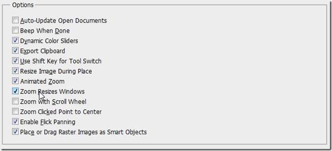 De oplossing : Preferences heeft ook een optie om dat probleem te beteugelen. Breng ze naar voren met de sneltoets Ctrl + K en kijk onder het tabblad "Algemeen". U ziet de optie voor 'Zoom Resizes Windows', waarmee het formaat van uw vensters automatisch wordt aangepast wanneer u inzoomt op een afbeeldingsbestand.