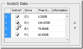 De oplossing : Druk op een eenvoudige sneltoets Ctrl + K om voorkeuren te openen en ga vervolgens naar 'Prestaties'. Je hebt opties op werkschijven om in te schakelen en je kunt al je gratis schijven toevoegen zodat Photoshop ze als extra werkschijven kan gebruiken.