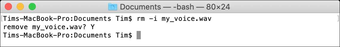 Opdracht verwijdert onmiddellijk bestanden of mappen zonder u eerst om bevestiging te vragen. Je kunt de