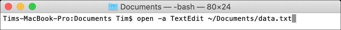 U kunt ook bestanden openen in specifieke toepassingen met behulp van de Vlag, gevolgd door de naam van de toepassing (of het pad naar het .APP-bestand als u het weet). Bijvoorbeeld:
