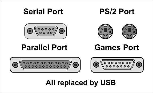 In het begin van de jaren negentig was het verbinden van randapparatuur aan pc's een puinhoop. Om een pc in te stellen, moest u een handvol verschillende soorten incompatibele poorten en connectoren gebruiken. Meestal omvatten die een toetsenbordpoort, een 9- of 25-pins RS-232 seriële poort en een 25-pins parallelle poort . Daarnaast gebruikten PC-gamecontrollers hun eigen 15-pins standaard, en muizen vaak aangesloten op seriële poorten of gepatenteerde kaarten.