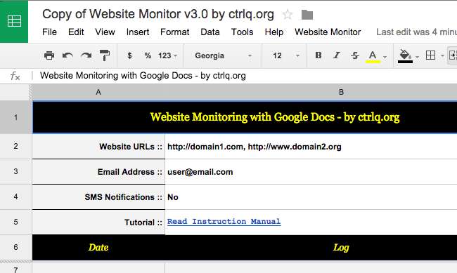 De Website Uptime Monitor script doet dit via Google Docs. Elke vijf minuten controleert het uw website. Als het niet werkt, wordt er een agenda-afspraak gemaakt met een herinnering in uw Google Agenda, en die herinnering is ingesteld om u onmiddellijk een sms-bericht te sturen. Het maakt gebruik van de sms-herinneringsfunctie van Google Agenda om u automatisch een sms te sturen - het gedeelte voor het verzenden van sms is gratis, hoewel het u bij sommige mobiele providers geld kan kosten om een sms te ontvangen. Dit script kan u in plaats daarvan ook een e-mailbericht sturen.