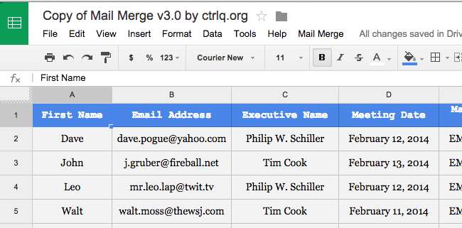 Een "mail merge" klinkt als iets heel ouderwets, maar kan nog steeds nuttig zijn. In wezen kunt u met een samenvoegbewerking gepersonaliseerde e-mails naar meerdere mensen sturen door een sjabloon te bouwen. Uw sjabloon kan bijvoorbeeld 'Hallo $ PERSOON, hoe gaat het?' Als u Afdruk samenvoegen had gebruikt, zou u een lijst met e-mailadressen en persoonsnamen kunnen hebben, en iedereen zou een gepersonaliseerde e-mail krijgen die begint met hun naam.