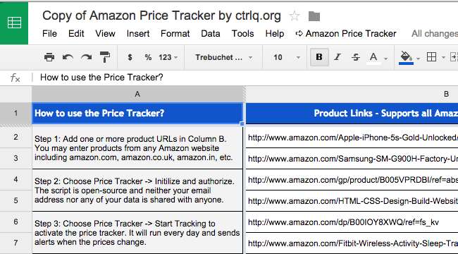De Amazon Prijstracker script neemt een lijst met URL's (website-adressen) naar producten op Amazon.com of een andere landspecifieke Amazon-website zoals Amazon.ca of Amazon.co.uk. Het controleert deze pagina's eenmaal per dag en stuurt u een dagelijkse samenvatting van de e-mail met een lijst met prijsbewegingen. Als u een product in de gaten wilt houden en het wilt kopen wanneer het goedkoper is, kan dit het werk voor u doen.