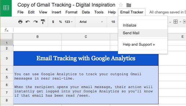 Gmail bevat niet de functie, maar de E-mailtracker script haakt in Google Analytics, zodat u e-mailopeningen via Google Analytics kunt bijhouden wanneer u het script gebruikt om een e-mail te verzenden. Het voegt een kleine 1 × 1 afbeelding in en Google Analytics rapporteert wanneer deze afbeelding is geopend. Nu Gmail automatisch afbeeldingen in e-mails laadt, zou dit nog nauwkeuriger moeten zijn.