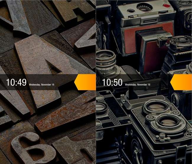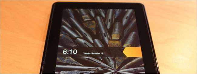 Bezitters van Kindle 3 zullen blij zijn om te zien dat de schermbeveiliging op slot aangenaam is - er zijn geen enge foto's meer van Emily Dickinson om naar te kijken. Er is één eigenaardigheid: het maakt niet uit in welke richting u het apparaat vasthoudt, het vergrendelingsscherm is altijd hetzelfde. Dus zelfs als je de Fire in landschapsmodus gebruikt, moet je ontgrendelen via portret. Het is niet echt een probleem, alleen interessant, omdat je het apparaat volledig ondersteboven kunt draaien en het scherm voor je omdraait.