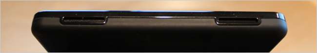 De luidsprekers zitten aan de bovenkant van het apparaat en ze zijn zielig. Zelfs op maximum hoor je ze niet zo goed - dit apparaat is duidelijk ontworpen voor gebruik met oortelefoons. Er is geen hardwarematige volumeregeling, wat soms verkeerd aanvoelt, maar aangezien je geen onverwachte (luide) telefoontjes krijgt tijdens de Fire, is het waarschijnlijk geen probleem. De volumeregelaars zijn meestal slechts een tik verwijderd, verborgen achter de instellingen.