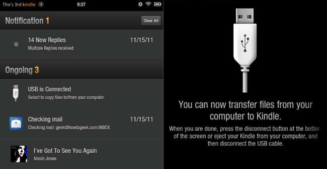 In tegenstelling tot de meeste Android-apparaten veeg je niet naar beneden om naar het meldingenvenster te gaan. In plaats daarvan zie je linksboven het aantal meldingen dat je momenteel hebt, en moet je op tikken om het paneel te openen. Dit werkt meestal goed, maar maakt het zeker iets minder gebruiksvriendelijk. Als je een aantal applicaties open hebt staan en muziek afspeelt, omvat de telling zowel lopende taken als meldingen, waardoor het verwarrend is om te begrijpen of die telling betekent dat je een nieuwe melding hebt of niet. De meeste Android-apparaten omzeilen deze verwarring door pictogrammen linksboven te plaatsen, maar dat zie je hier niet. En ja, net als elk Kindle-apparaat kun je bestanden naar het apparaat overbrengen door het simpelweg op een computer aan te sluiten, waar het als een schijf is gemonteerd.