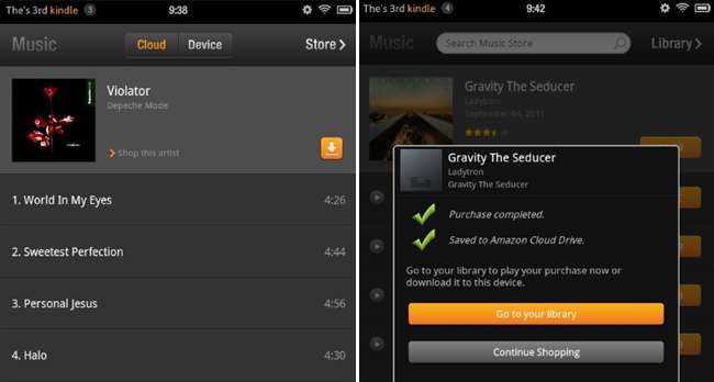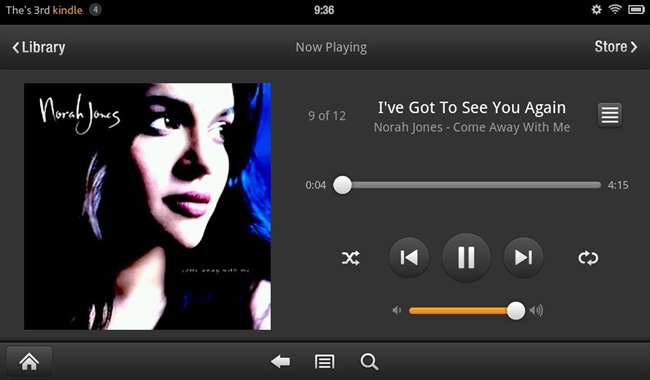 Als je de Cloud Player van Amazon op internet of een ander apparaat hebt gebruikt, ben je bekend met de ervaring op de Kindle Fire. U hebt toegang tot uw volledige muziekcollectie, deze streamen vanaf hun servers, downloaden naar de cache op het apparaat of nieuwe muziek kopen in de winkel. De speler werkt zowel in liggende als staande modus goed, en je kunt muziek op de achtergrond afspelen.