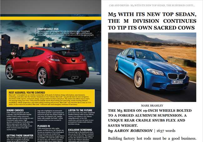 Voor sommige dingen werkt dit redelijk goed, zoals de New York Times, die voornamelijk uit tekst bestaat. Voor andere tijdschriften, zoals Popular Science en Car and Driver, zijn er nog enkele opmaakproblemen. De standaardweergave is de afbeeldingsweergave, die niet helemaal goed werkt. Het 7-inch scherm is niet groot genoeg om de meeste inhoud duidelijk te lezen, en inzoomen werkt redelijk totdat je naar de volgende pagina bladert. Daarna zoomt het weer uit. U kunt de menu's gebruiken om van de paginaweergave naar de tekstweergave te gaan, waar u de inhoud veel gemakkelijker kunt lezen, maar veel van de visuele pracht is verdwenen. Het is absoluut iets dat moet worden opgelost.